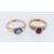 YELLOW METAL RINGS, including blue sapphire and pink gem stone, both engraved 'K18', ring size O and L, 8.6gms (2)