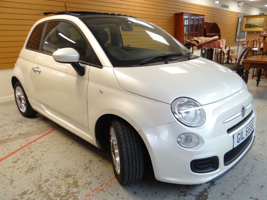 2014 FIAT 500 0.9 TWINAIR S 3dr DUALOGIC HATCHBACK WITH CHERISHED REGISTRATION 'GIL 6668', Petrol Automatic, Pearl White, 23,990 Miles, last service 26/3/18 (four further Fiat dealer service stamps), MOT expires 14/3/2022, one key, Bluetooth connection, Rear wiper, Service indicator, Steering wheel mounted controls, Audio remote control, Radio/CD, USB/ipod interface, Body coloured bumpers, Electric door mirrors, Climate control, Folding rear seats, Front electric windows, Height adjustable drivers seat, Rear headrests, Sports seats, Steering wheel rake adjustment, ABS, Drivers airbag, Isofix child seat anchor points, Passenger airbag, Side airbags, Remote central locking, Alloy wheels, Spare wheel.