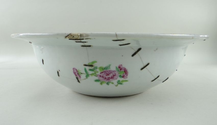 Comments: Broken and riveted, two large chips, interior enamels worn