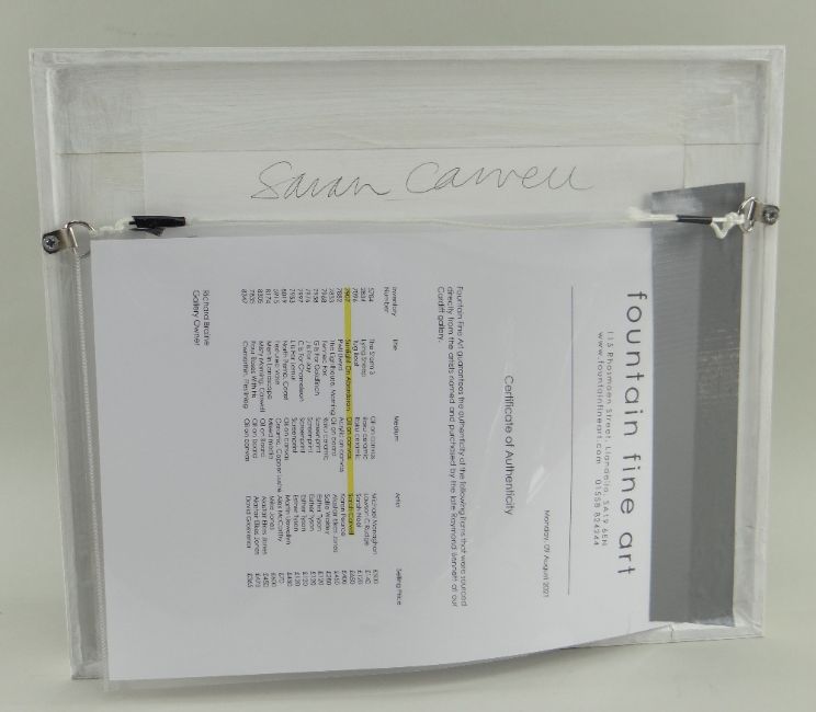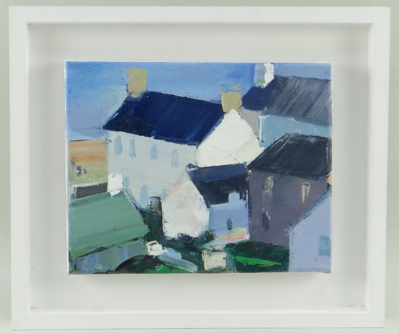 SARAH CARVELL oil on canvas – entitled verso on Fountain Fine Art label ‘Sunlight on Aberdaron’, 21 x 25cms