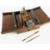 EARLY 19TH CENTURY ROSEWOOD DESK BOX, bobbin turned handle, top flaps opening to reveal inkwells, pen trays and compartments, side drawer containing bundle of hand written sermons dome dated late 1820s, early 1830s, box 25 x 23 x 14cms