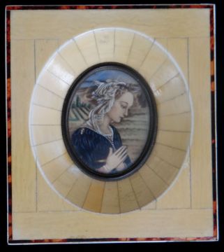 ASSORTED PICTURES, including two Italian antique-style portrait miniatures, and two Continental acrylics of landscapes (4)