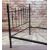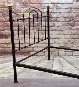 EDWARDIAN CAST IRON & BRASS DOUBLE BED FRAME, shaped bar head and footboard, with ornamented clasps, 203 long x 140 wide x 142cms high