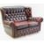 MAROON LEATHER BUTTON-BACK UPHOLSTERED WING-BACK SETTEE, with two loose cushions, 91h x 140w x 87cms