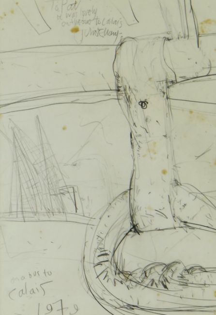 JOHN BELLANY (1942-2013) pencil - On a Bus to Calais, signed and inscribed, "To Pat, It was lovely on the bus to Calais", dated 1979, 29 x 41cms
