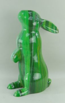 ALEX ECHO mixed media with resin - Keats, seated rabbit sculpture in green and yellow, signed, with COA from Castle Fine Art, 45.5cms high
