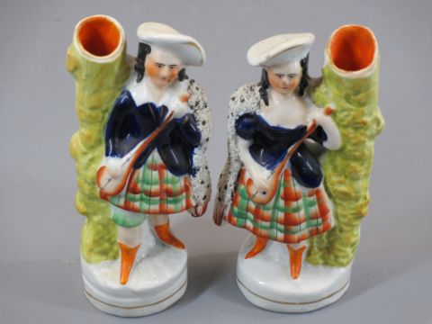 STAFFORDSHIRE COW CREAMER, kilted figure spillholders, vintage pin cushion dolls, Toby jugs, ETC