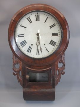 A VICTORIAN MAHOGANY DROP DIAL CLOCK, ETC