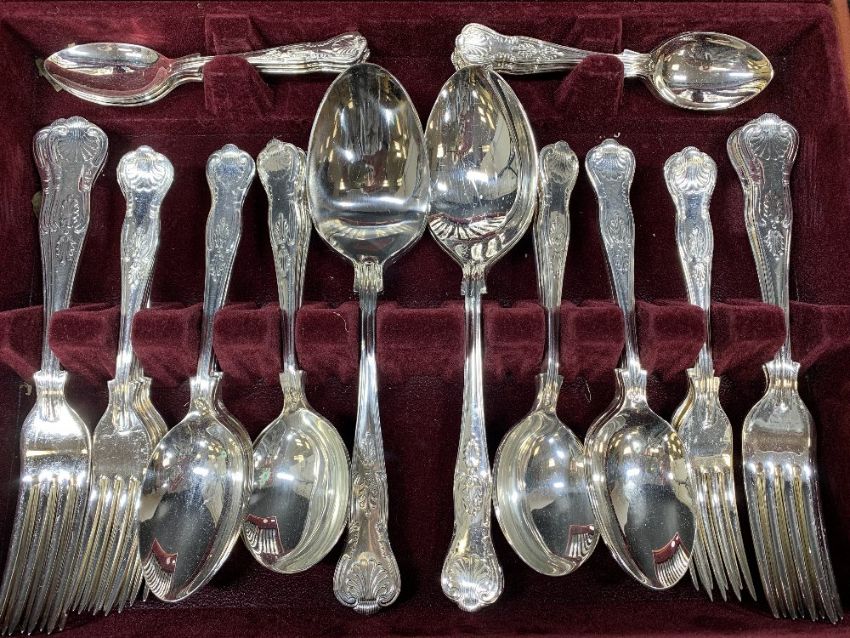 COOPER LUDLUM WOODEN CASE OF KINGS PATTER CUTLERY and a quantity of loose cutlery