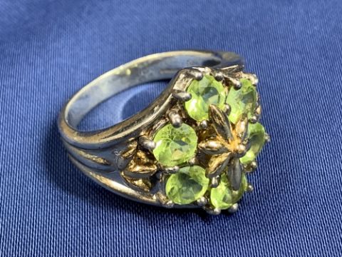 COLLECTABLE JEWELLERY - a mixed quantity to include a Shipton & Co 9ct gold and silver ring with peridots, size Mid S-T, silver colour bracelet marked 'Pandora', a pair of 9ct gold peridot set ear studs, small silver bracelet, amber type silver ring size S, large acrylic type colourful necklace and bracelet set, ETC