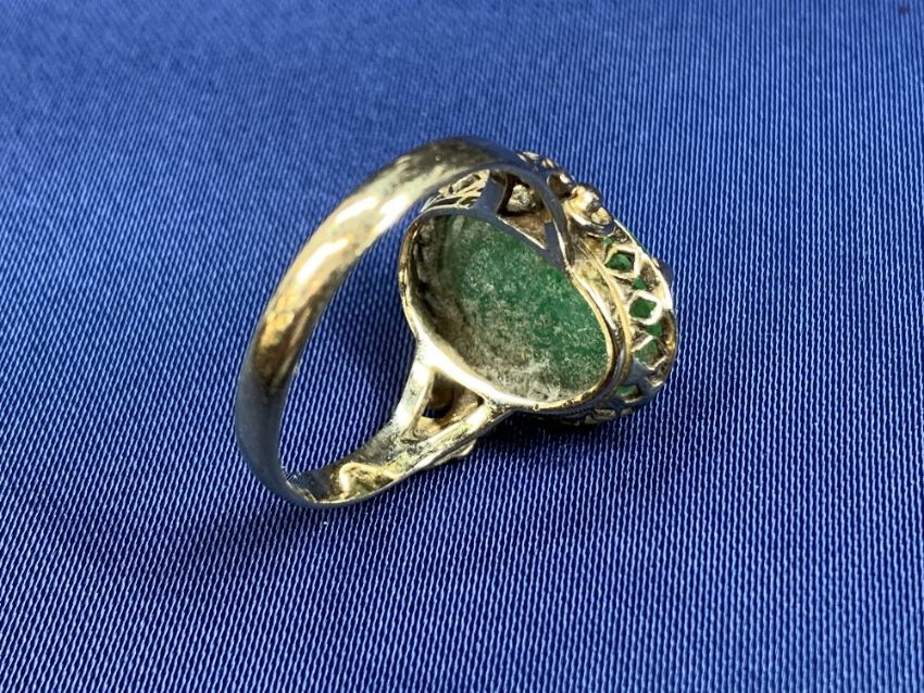 22CT GOLD RING - set with oval cabochon stone, probably Quartz, Size M, 3.6grms gross