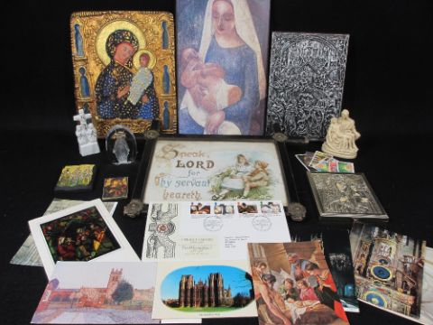 APPRENTICE/DOLL'S DRESSER, an assortment of doll's house furniture, carved mirror, religious icons, ETC