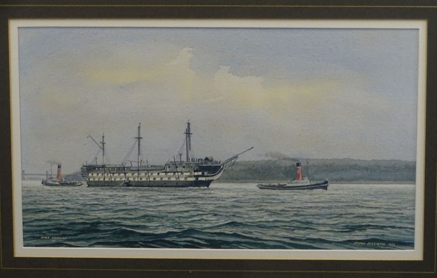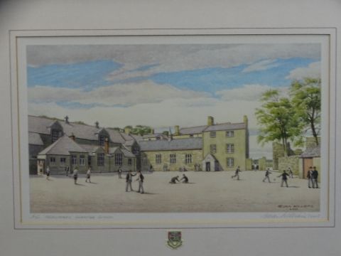 IEUAN WILLIAMS Anglesey artist, watercolour - 'HMS Conway', signed and dated 1988, 25 x 45cms and a limited edition print 530 - 'Beaumaris Grammar School', signed in pencil, 22 x 28cms