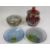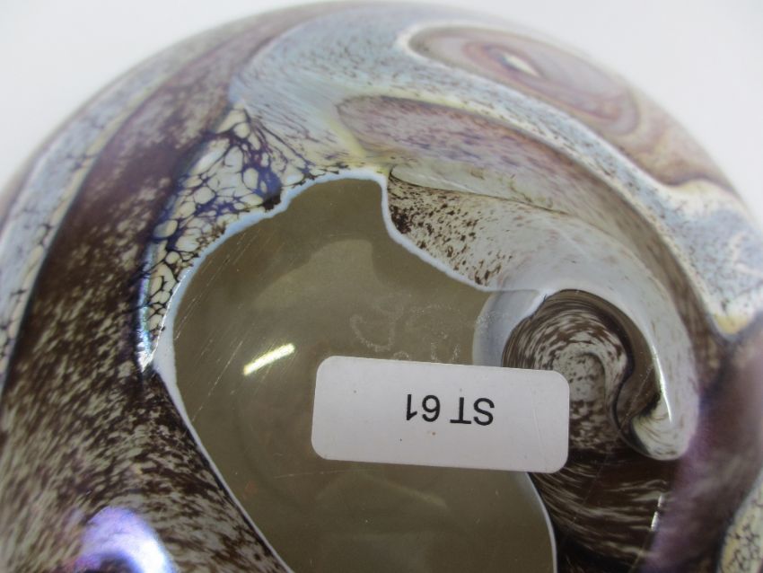 ART GLASSWARE PAIR OF IRIDESCENT PLATES - 16cms D, lidded lustre vase, 18cms H and a bowl by Gozo, 8cms D