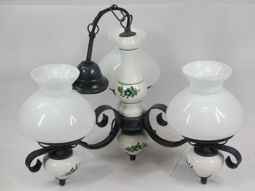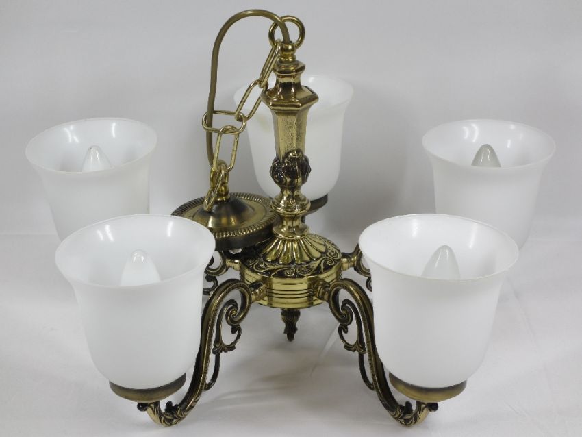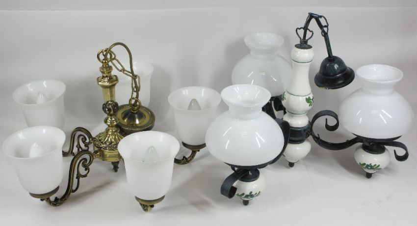 LIGHTING - brass effect chandelier style ceiling lamp and another china and metallic version