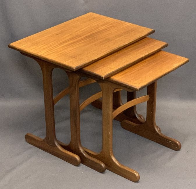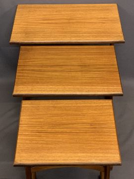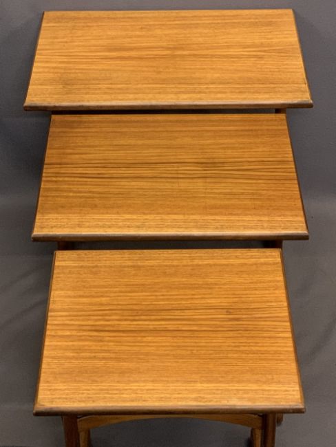 G PLAN MID-CENTURY TEAK NEST OF THREE OCCASIONAL TABLES - 52cms H, 56cms W, 40.5cms D the largest