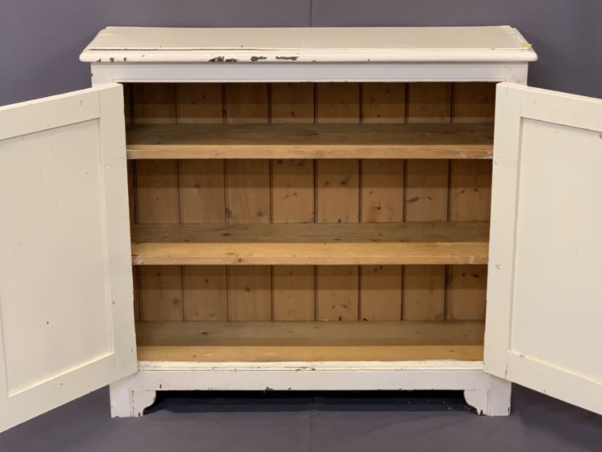 VINTAGE PAINTED PINE TWO DOOR CUPBOARD - 92cms H, 103cms W, 32cms D