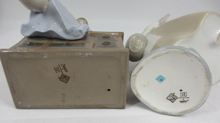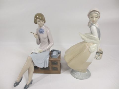 NAO FIGURINES (2) - Girl with a basket and a lady sat near a telephone, 24cms H the tallest