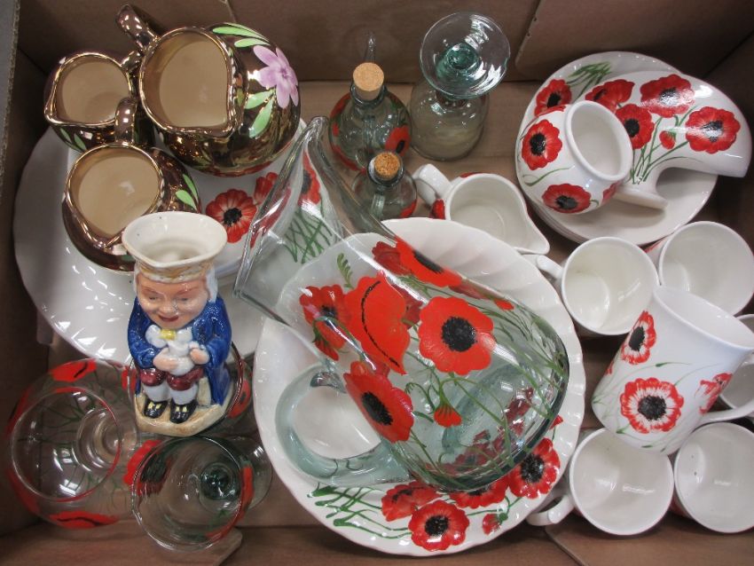 ROYAL DOULTON 'MYSTIQUE' DINNER WARE - approximately 39 pieces, blue and white dresser plates, Staffordshire dinner ware, Poppy decorated glass and china, ETC