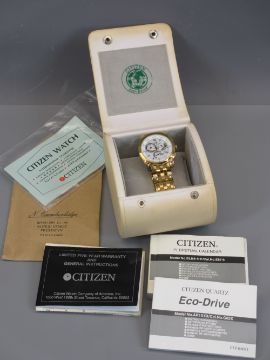 CITIZEN ECO DRIVE ROLLED GOLD ENCASED WRISTWATCH - Citizen Quartz rolled gold five bar bracelet, together with case, booklet and instructions, ETC