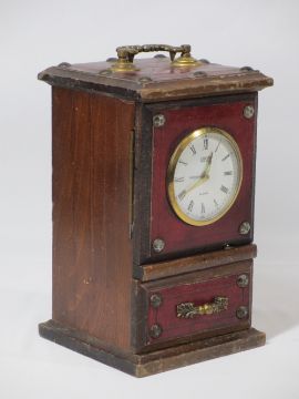 JAPANESE CLOCK & JEWELLERY BOX COMBINATION, 21cms tall x 11cms W x 11cms D