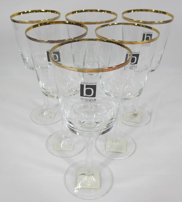 BROSTE HANDMADE WINE GLASSES, A SET OF 6 along with a very large assortment of drinking and mixed glassware (6 boxes)