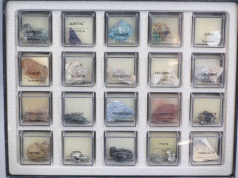 ECLECTIC ASSORTMENT - 'Treasures of the Earth' mineral collector's sets (6), brass bound Bunyan's 'Pilgrims Progress', a brass circular wall mirror and a squirrel table lamp
