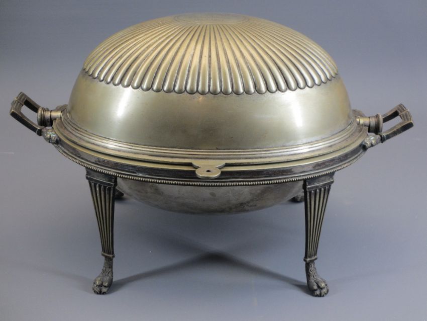PRESENTATION EPNS BACON SERVER, inscribed 'Presented to Detachment ASC Elandsfontein, October 8, 1901', 23cms H, 34cms W
