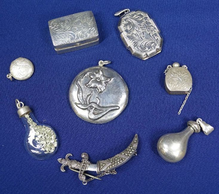 MIXED SILVER ITEMS, MAINLY BROOCHES, PENDANTS, LOCKETS & MINIATURE BOXES - a large parcel