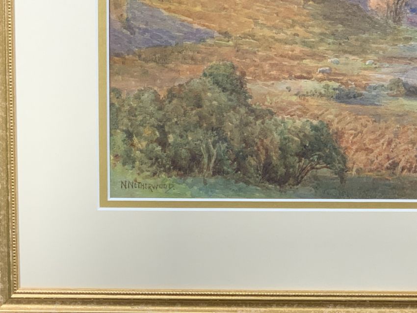N NETHERWOOD watercolour - North Wales scene with figures and sheep, signed, 38 x 61.5cms