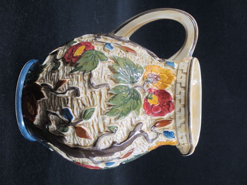 TWO JUGS, TWO BOWLS to include H J Wood Indian Tree, S Hancock & Sons Reuben's ware, Minton Vanessa and Wedgwood Green Jasperware