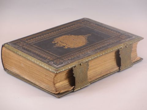 VICTORIAN WELSH BIBLES (2) - having fancy brass mounts and clip plates along with two others