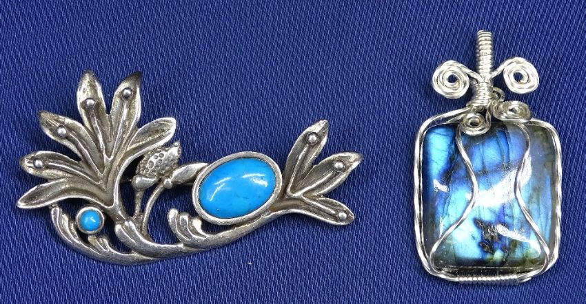 VICTORIAN & LATER VARIOUS STONE, GLASS & OTHER SET JEWELLERY, 15 items including Blue John pendant, Cairngorm wishbone brooch, 925 stamped stylised brooch with possible Cornelian cabochon and other interesting items