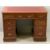 EDWARDIAN MAHOGANY TWIN PEDESTAL DESK with gilt tooled red leather inset over three frieze drawers and twin banks of three drawers having pierced brass backplates and swing handles, on plinth bases, 74cms H, 106.5cms W, 59cms D