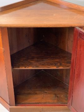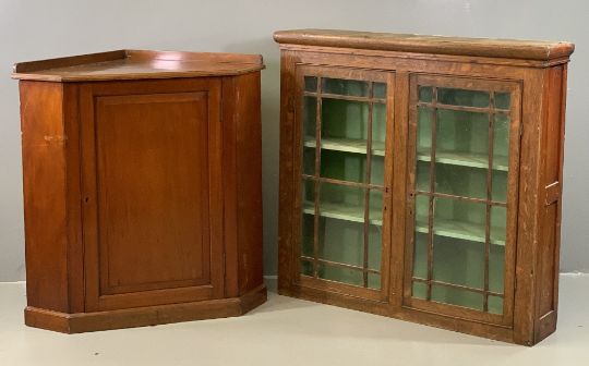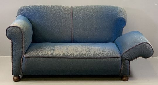 CIRCA 1930's MOQUETTE DROP ARM SOFA, 80cms H, 153cms W, 81cms D, a Victorian mahogany cylindrical step commode, 45cms H, 44cms maximum diameter, a line inlaid mahogany oval wall mirror, 62.5 x 100cms, an antique oak and pine glazed bookcase top, 103cms H, 109.5cms W, 26cms D and a floorstanding railback single door mahogany corner cupboard, 95cms H, 92cms W