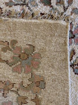 MODERN WOOLLEN LARGE FLORAL PATTERN RUG with tasselled ends, 280 x 230cms approximately