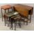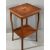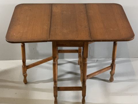 VINTAGE & LATER FURNITURE PARCEL (3) to include a drop leaf gate leg dining table, 74cms H, 75cms W, 35cms D closed, 108cms fully open, reproduction set of three glass topped tables with gilt tooled leather insets, 54cms H, 54cms W, 42cms D the largest and a floral inlaid top two tier side table, 70cms H, 43cms W, 38cms D