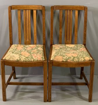 INLAID MAHOGANY EX-GRAMOPHONE CABINET, 49cms H, 46cms W maximum, 67cms D maximum, two oak side chairs and a reproduction mahogany wine table