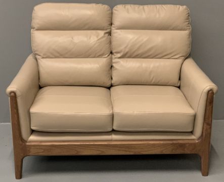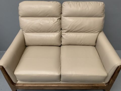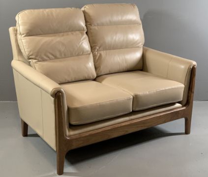AS NEW CINTIQUE LYDIA TWO SEATER SETTEE in mushroom tone leather, 98cms H, 130cms W, 95cms D