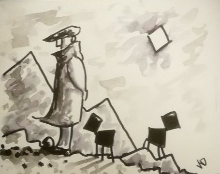 KARL DAVIES ink and watercolour - entitled 'Farmer', 25 x 30cms, glazed and framed in black