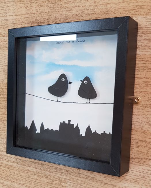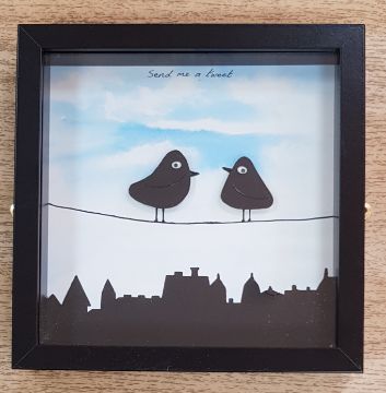 REDVERS JOHN mixed media multi layered - entitled 'Send Me a Tweet', 25 x 25cms, glazed and framed in black