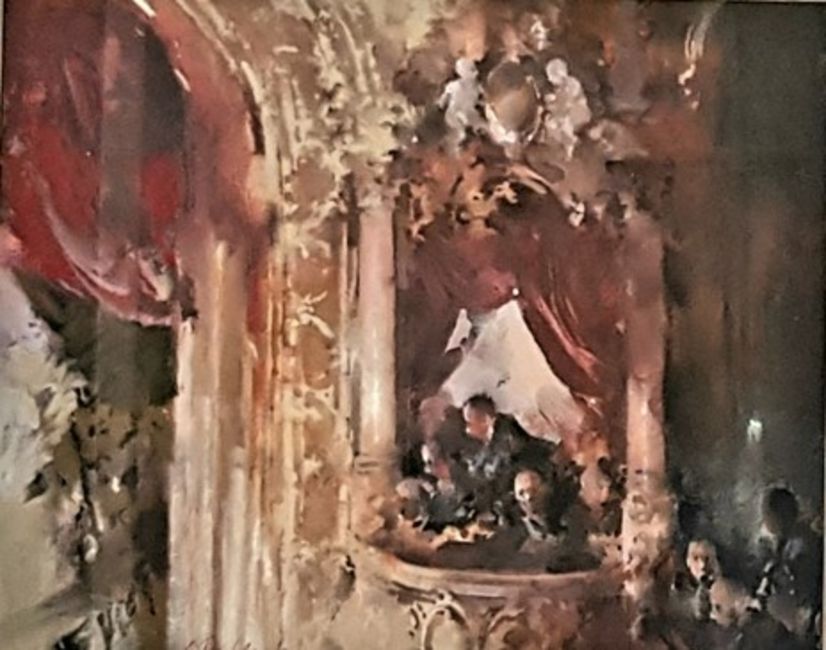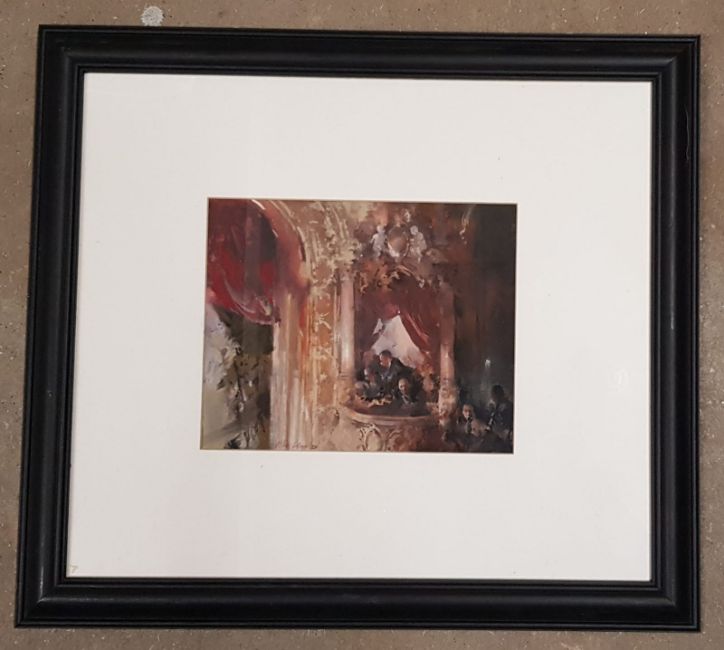 JOHN MACFARLANE gouache and crayon - entitled 'The Opera Box', 51 x 58cms, black frame glazed