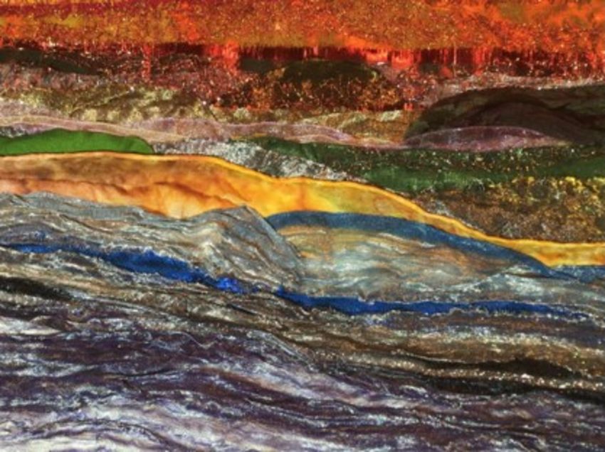 ANNIE BIELECKA limited edition (1/2) print from textile - entitled 'Tumultuous Seas/ Moroedd Mawr', signed and mounted, 42 x 42cms