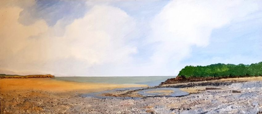 JILLY HICKS oil on canvas - entitled 'Watchtower Bay, Barry', 27 x 60cms