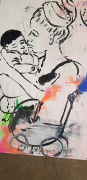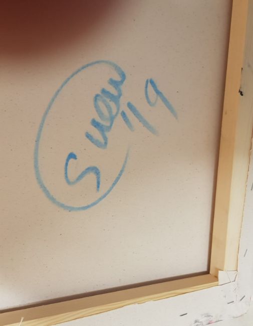 SUE WILLIAMS oil on canvas - entitled 'LoveLustLonging', 59 x 59cms, stretched canvas, ready to hang