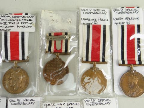 ELEVEN SPECIAL CONSTABULARY LONG SERVICE MEDALS including George V, George VI, and QEII examples (11)
