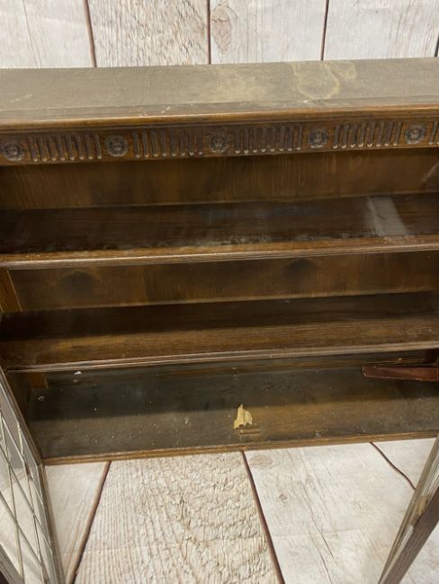 VINTAGE OAK BOOKCASE TOP, Priory style with twin leaded glazed doors and interior shelving, 88.5cms H, 116cms W, 24cms D