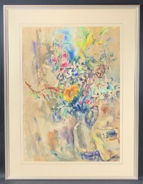 LOUISA WILHELM-HOFFMAN (Born Hungary 1911- 1978) fine watercolour - Still Life flowers in a vase, signed and dated 1966, 67 x 47cms