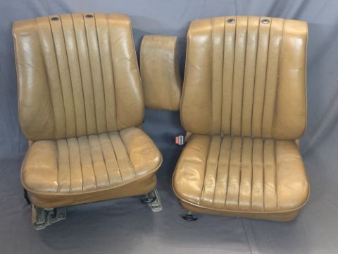 VINTAGE CAR SEATS - a quantity, 1984 Mercedes 300, along with a chrome edged windscreen, 150cms W with slight curve, 69cms H