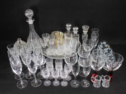 MIXED VINTAGE & LATER GLASSWARE within three boxes to include twist stem flutes, animal etched drinking glasses ETC